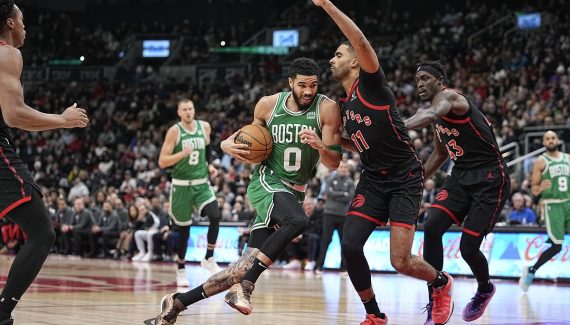 Toronto a encore une dernière chance d’arracher une prolongation ou la victoire mais les tentatives de loin d’Immanuel Quickley et Pascal Siakam ne rentrent pas. Derrick White, lui, ne manque pas la cible dans le coin pour assurer la victoire (96-105) des leaders de la ligue.