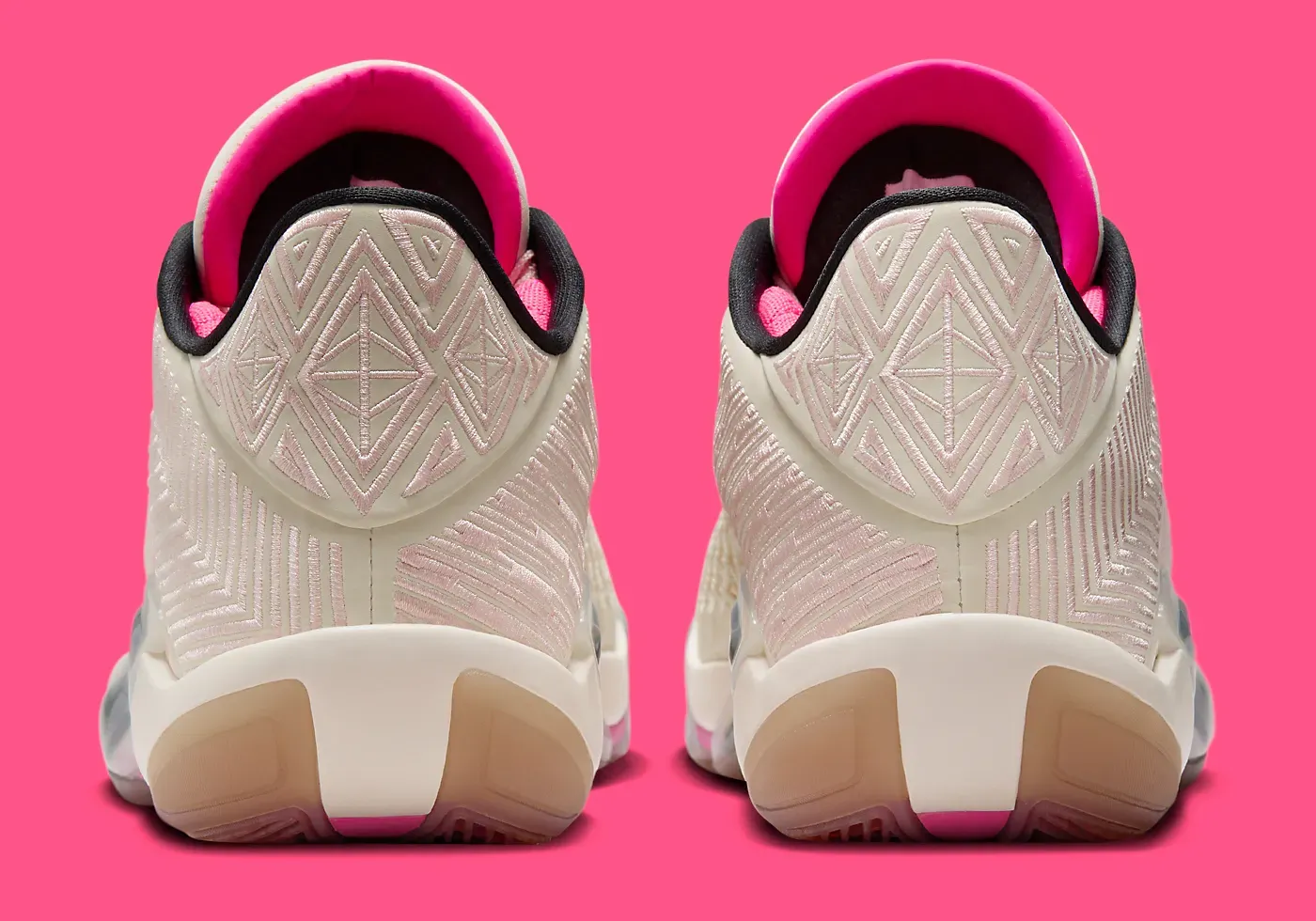 On retrouve une tige couleur blanc nacré-beige pour l'effet lait de coco, avec des touches de rose, pâle ainsi que sur les lacets, et plus foncé au niveau du col, pour compléter le tout. On trouve également des finitions en noir, pour faire ressortir le « Jumpman » sur la languette notamment. L'ensemble repose sur une semelle extérieure en beige translucide.