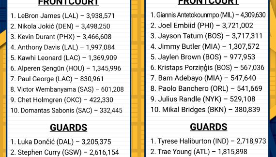 À deux jours de la conclusion des votes, pas de changement à souligner au niveau des choix du public pour le All-Star Game 2024, comme révélé par le troisième et dernier pointage de la NBA.