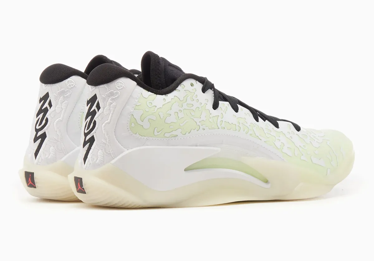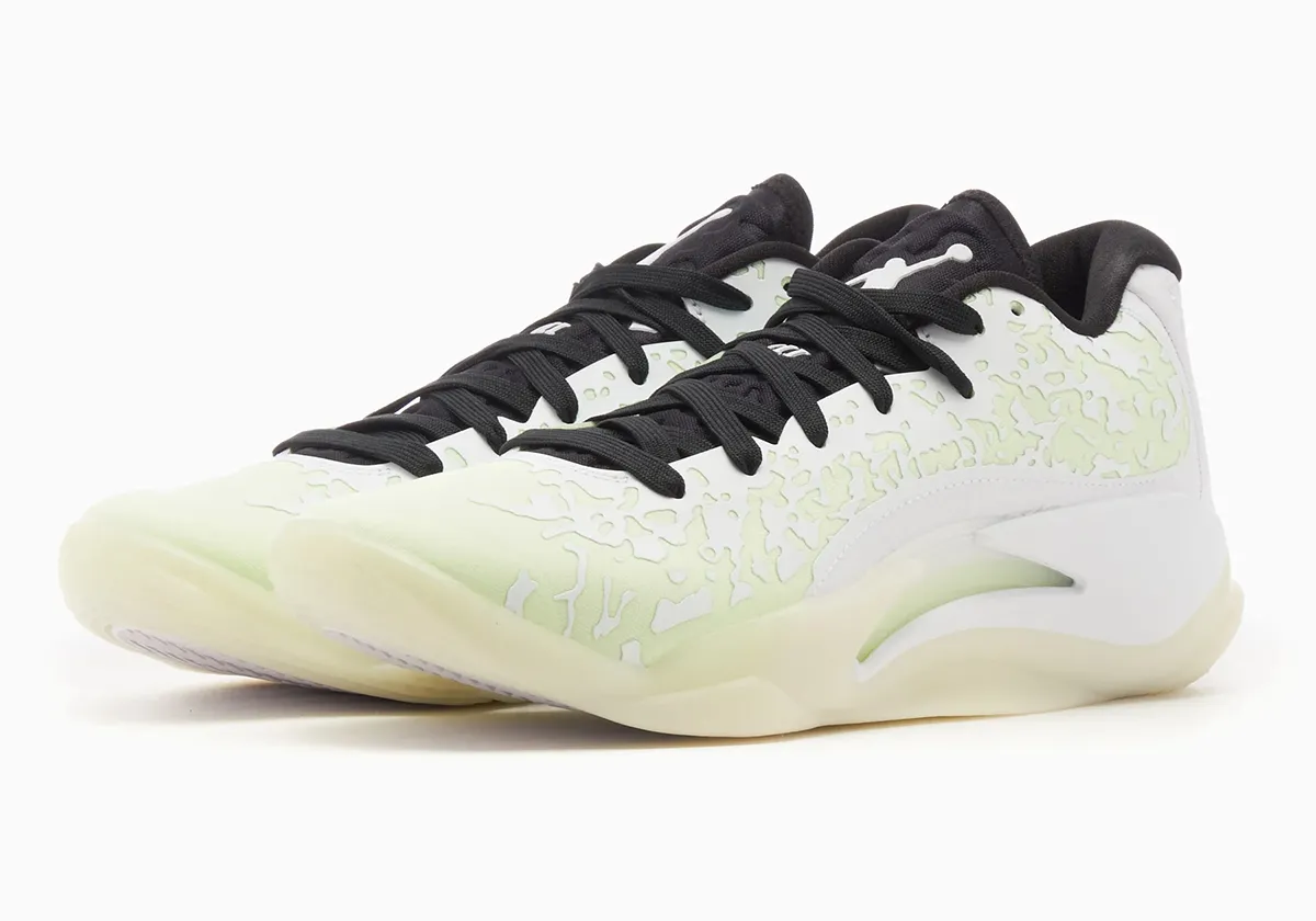 Baptisé « No Guts », il se distingue par son revêtement en vert pâle sur la tige et une partie de la semelle intermédiaire. L’ensemble est complété par du blanc et des finitions en noir, au niveau du col, de la languette et du logo Zion présent sur le talon.