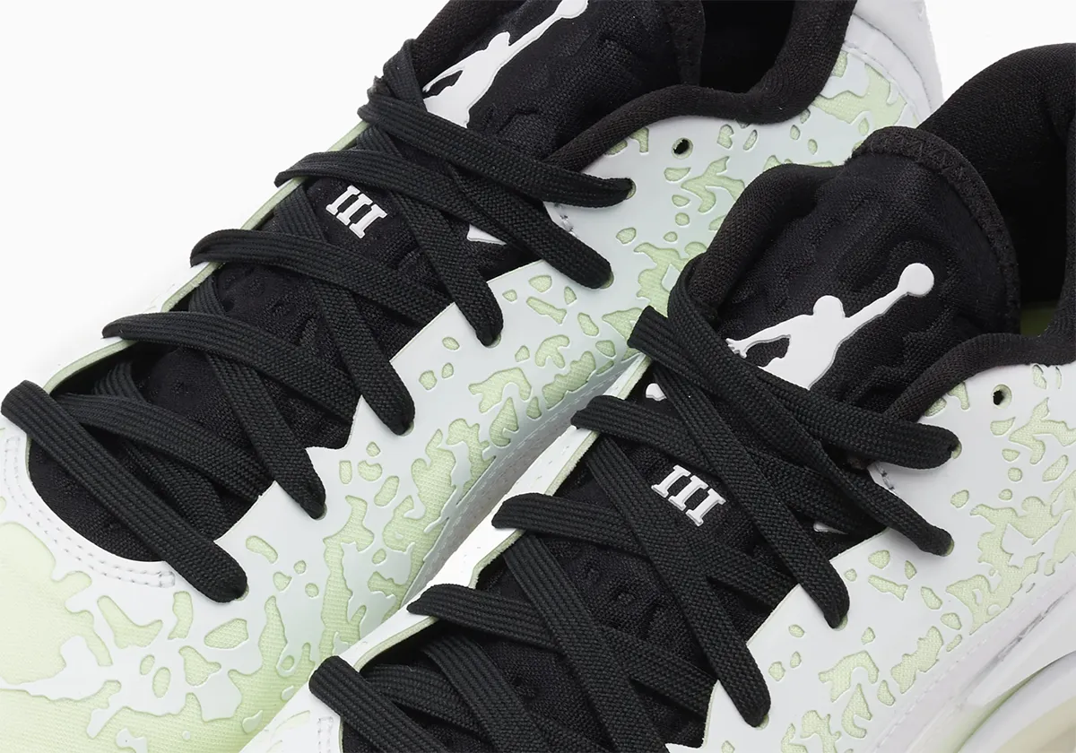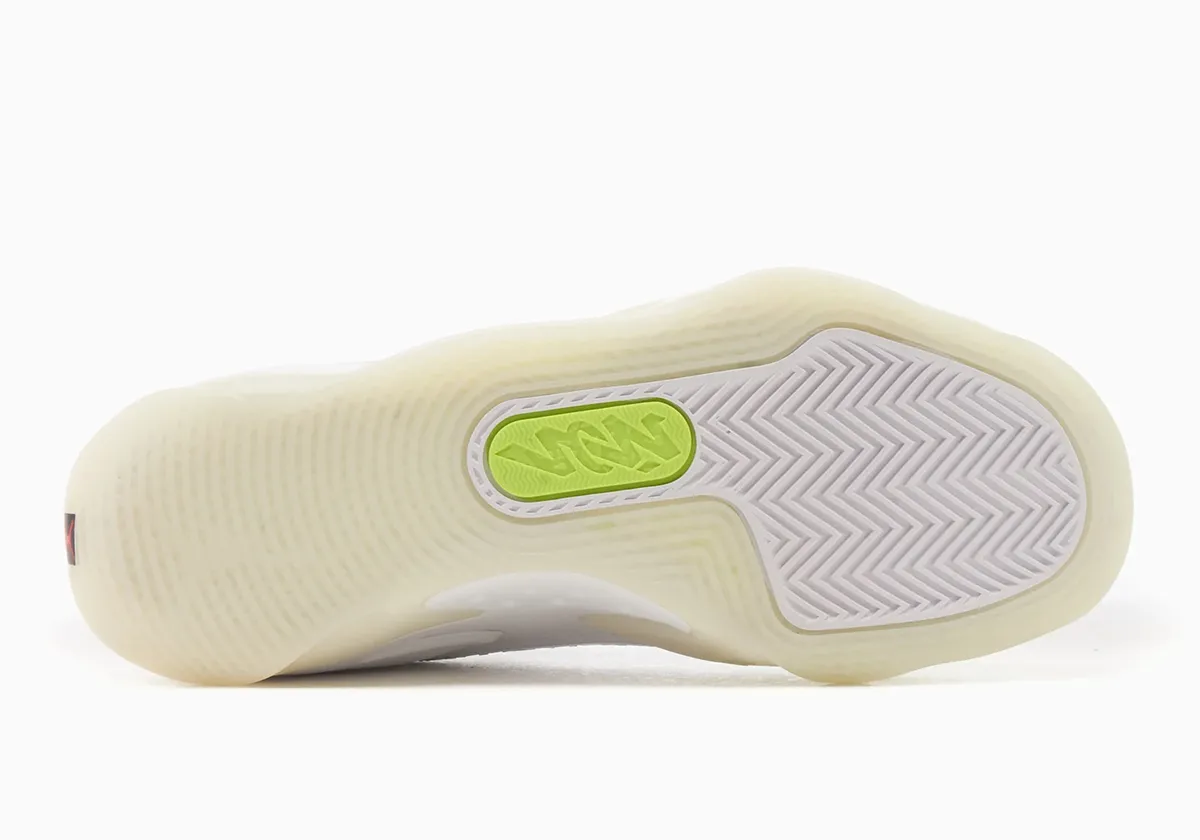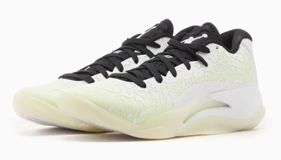 Baptisé « No Guts », il se distingue par son revêtement en vert pâle sur la tige et une partie de la semelle intermédiaire. L’ensemble est complété par du blanc et des finitions en noir, au niveau du col, de la languette et du logo Zion présent sur le talon.