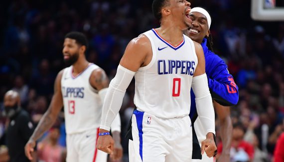 – L’incroyable comeback de Los Angeles. Dix minutes à jouer dans le quatrième quart-temps, et les Clippers sont menés 104-86. On se dit alors que les Nets vont réussir à valider un succès logique et maîtrisé, mais c’était sans compter sur la force de frappe collective de cette équipe californienne. Sous l’impulsion de James Harden, Russell Westbrook et Kawhi Leonard, les hommes de Tyronn Lue se mettent à devenir injouables de chaque côté et ils terminent la partie sur un… 22-0 ! Juste dingue à observer et la foule peut exulter en compagnie de l’hyperactif et décisif Westbrook.