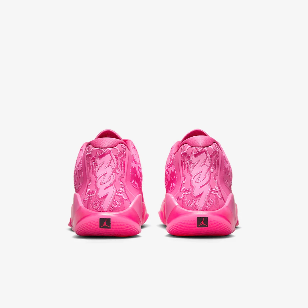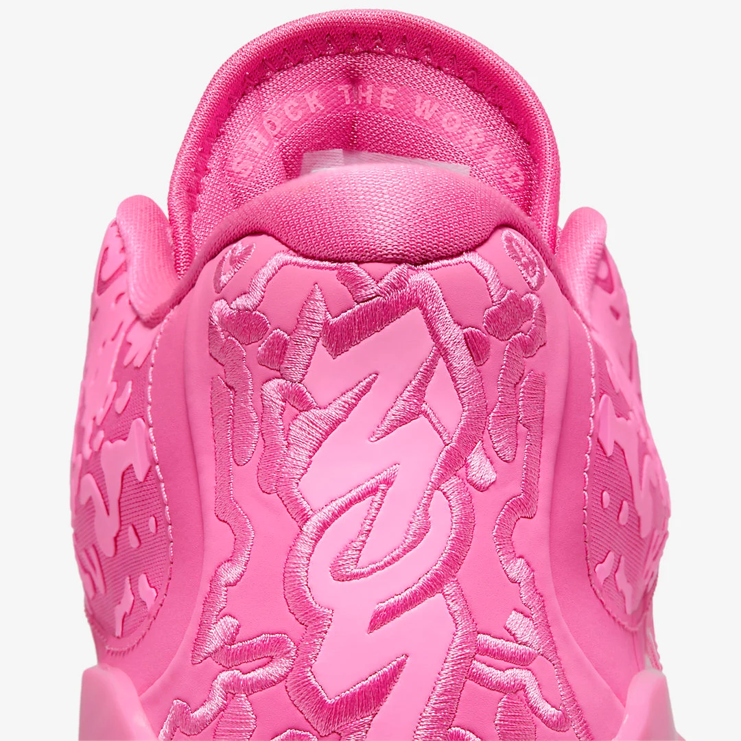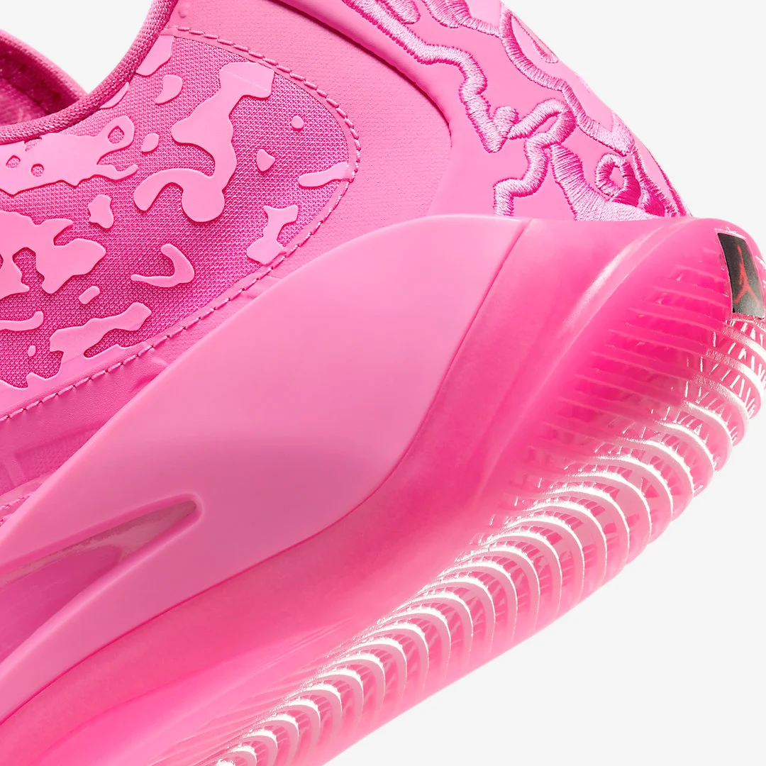 Il s’agit du coloris « Triple Pink », qui se présente sous deux teintes de rose pour habiller sa tige, tandis que la semelle, également rose, est assortie d’un revêtement extérieure translucide. Seul le logo « Jumpman » ressort sur un carré noir à la base du talon.