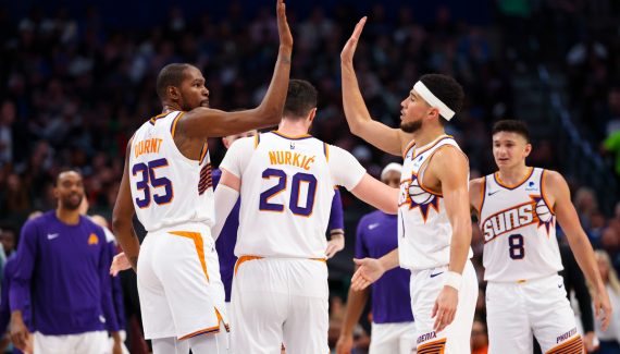 – Devin Booker brille, Kevin Durant ne force pas. C’est Devin Booker qui a sonné la révolte pour les Suns, face à des Mavericks qui étaient partis trop vite et qui se sont essoufflés, ne faisant plus les efforts pour revenir en défense. Le meneur/arrière en a profité pour inscrire 46 points, dont 30 entre le milieu du deuxième quart-temps et la fin du troisième. De quoi retourner Dallas et permettre à Kevin Durant (12 points) de ne pas devoir forcer.