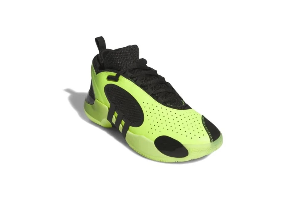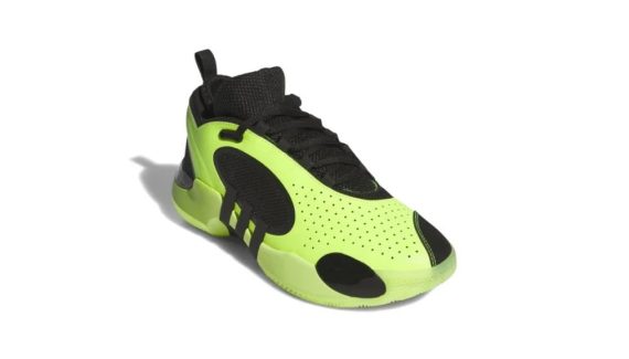 Cette version de la cinquième chaussure signature de Donovan Mitchell ne passera pas inaperçue avec sa tige en vert fluo complétée de touches de noir, à l’avant et à l’arrière de la paire, sur la languette, et pour faire ressortir les trois bandes latérales.