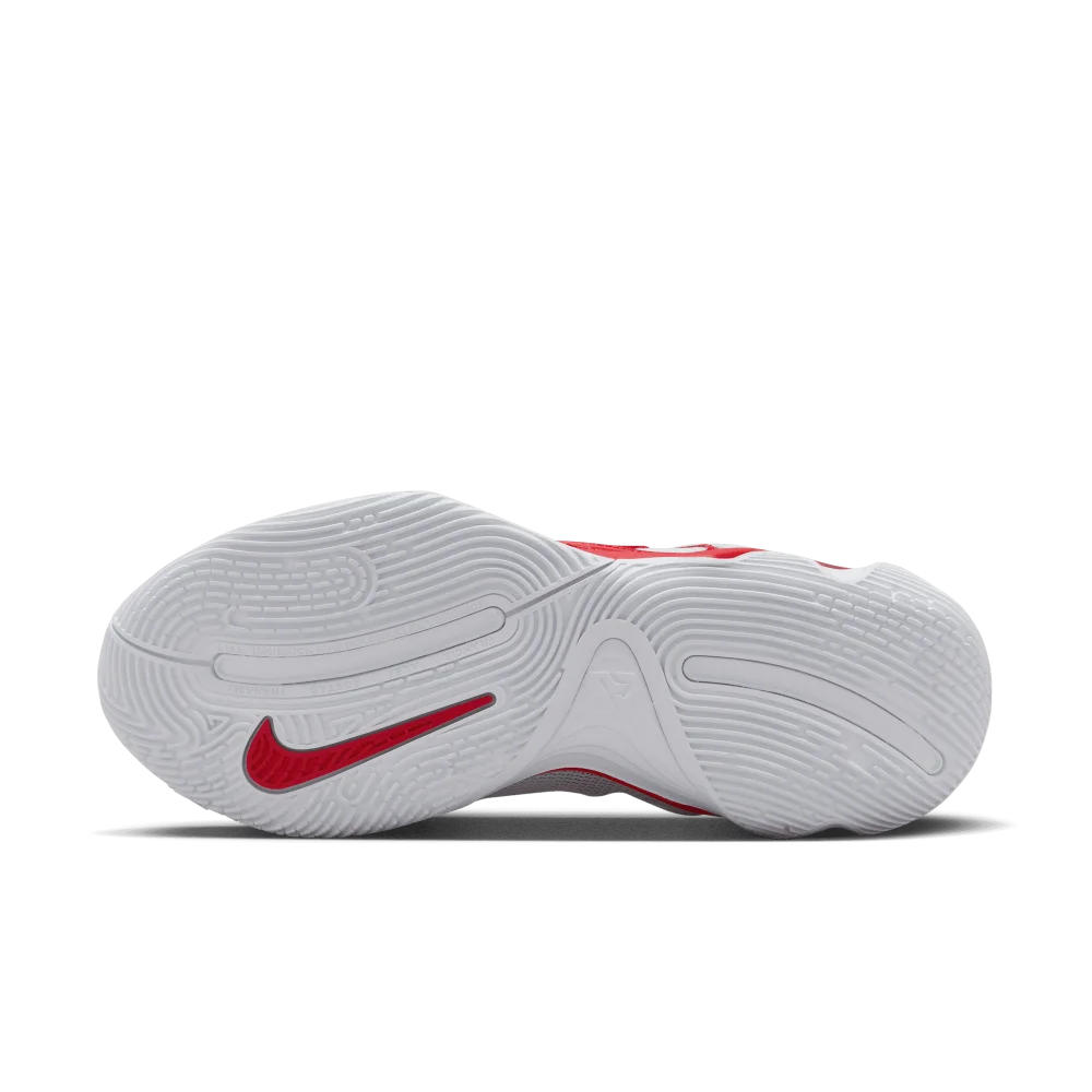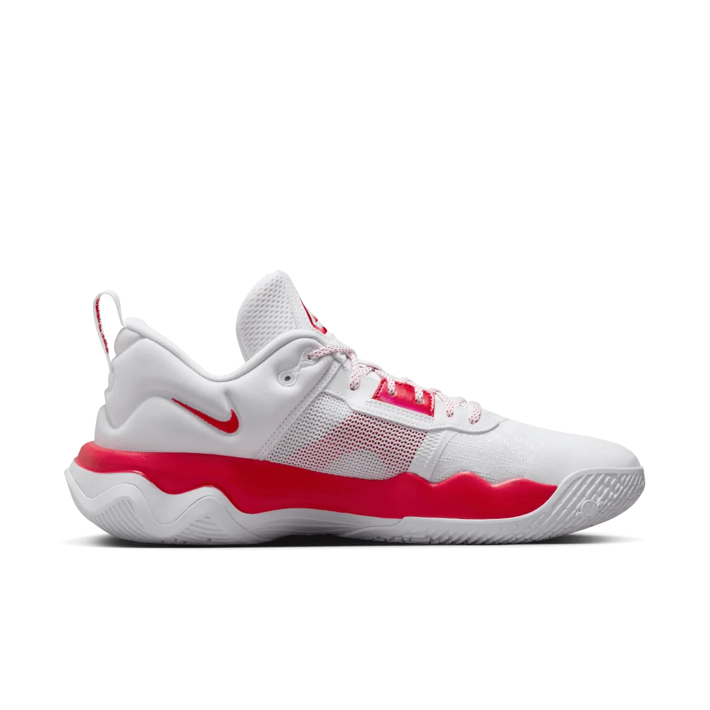 Pour l’heure, on retrouve un modèle dépareillé, majoritairement rouge sur la chaussure droite et inversement, avec un “Swoosh” inversé en rouge aux contours blancs sur la chaussure droite, et inversement pour la gauche. Même principe pour la semelle, en blanc sur rouge sur la chaussure droite et rouge sur blanc sur la gauche.