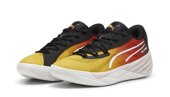 Mise en avant par Scoot Henderson cet été avant que ce dernier ne bénéficie de sa propre chaussure signature, la All-Pro Nitro, en est déjà à son neuvième coloris à la vente sur le marché français. La grande sœur de la “Rise Nitro” est de retour aujourd’hui avec une nouvelle version baptisée “Showtime”, un coloris rappelant quelque peu la Stewie 2 “Fire”, également dessinée par Puma.