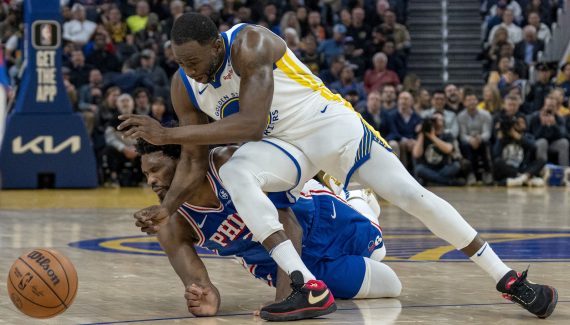 Déjà incertain avant la rencontre en raison de ses problèmes au genou gauche, Joel Embiid a vécu une soirée cauchemar à San Francisco, puisqu’il a quitté ses coéquipiers… sur blessure ! Clairement transparent jusque-là, voire peu concerné, le MVP 2023 était au sol lorsqu’il s’est pris les 100 kilos de Jonathan Kuminga sur le genou. Il restait alors quatre minutes à jouer.