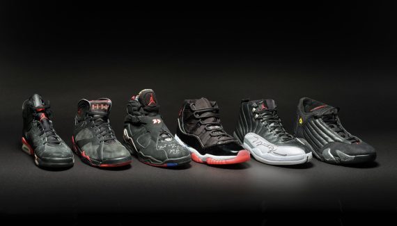 Le marché des ventes aux enchères s’est enflammé, puisque Sotheby’s a rendu disponibles à l’achat rien de moins que six des chaussures portées par Michael Jordan lorsqu’il a remporté les matchs lui assurant chacun de ses six titres NBA.