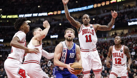Après avoir martyrisé les Pacers, Domantas Sabonis et De’Aaron Fox enchaînent face aux Bulls. C’est la cinquième victoire en six matches à l’extérieur pour les Kings, et les deux oubliés du All-Star Game ont fait de gros dégâts. Le Lituanie y va de son désormais habituel triple-double avec 13 points, 14 rebonds et 10 passes. C’est au passage son 31e double-double de suite !