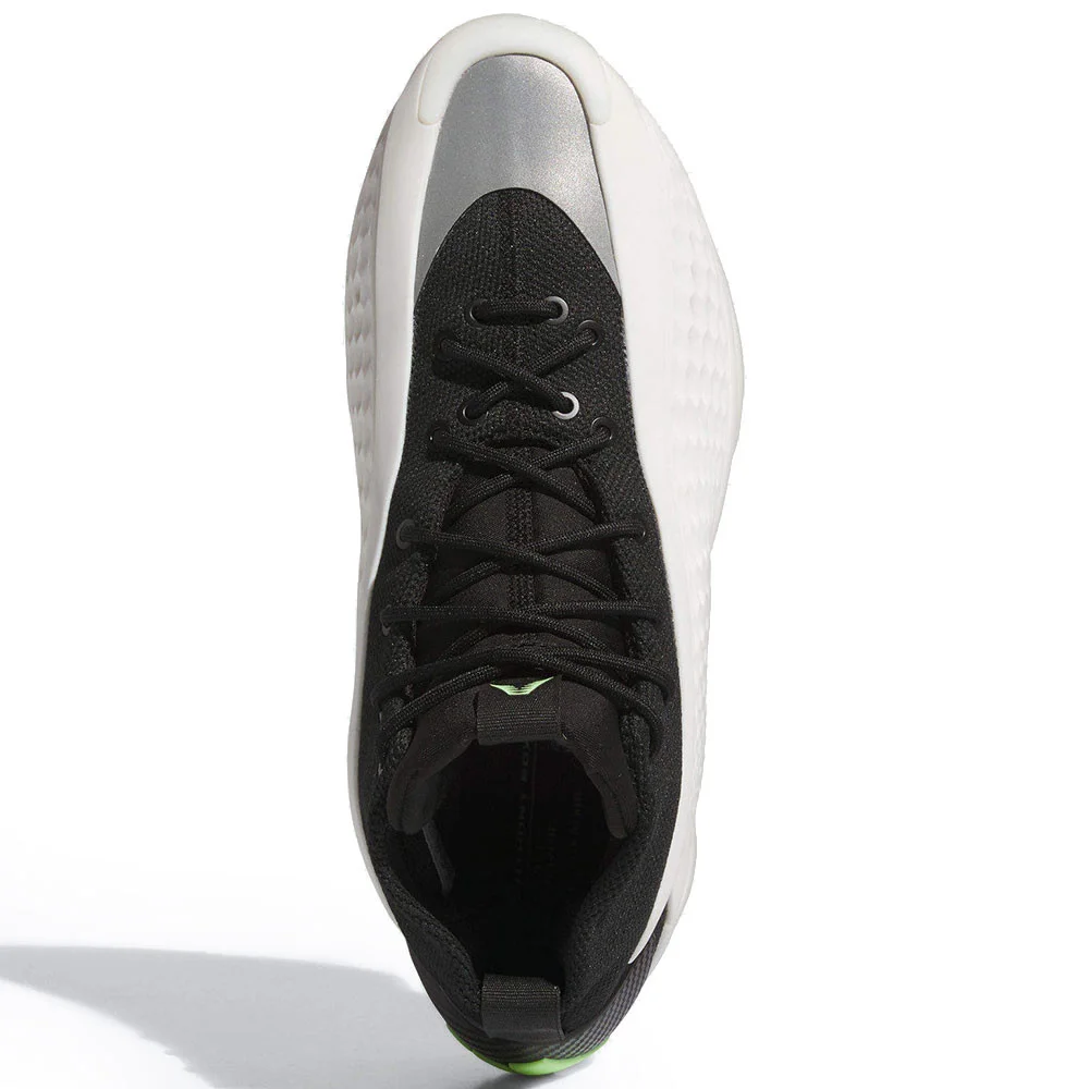 Le modèle ressort donc avec une tige en blanc à sa base et noir sur la partie supérieure, ainsi qu’une touche de gris à l’avant du pied. Les logos d’adidas et du joueur ressortent en vert pâle, sur le talon et la languette.