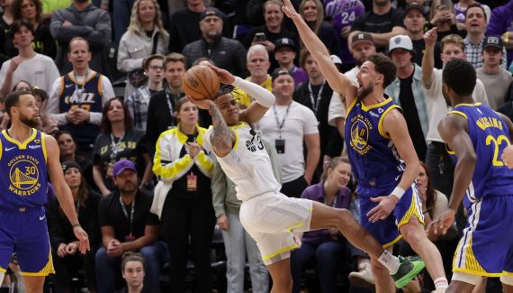 Klay Thompson loupe un 3-points. Rebond John Collins. La balle de match est pour Lauri Markkanen, qui manque son 3-points dans le corner. Mais John Collins, encore lui, est au rebond offensif. Il arrache le rebond au milieu des Warriors. Il cherche du regard un coéquipier. Et là, il balance la balle… dans les tribunes !!! L’ancien intérieur des Hawks se prend la tête à deux mains.
