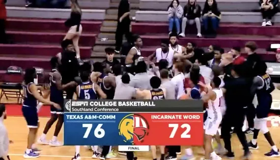 Lundi soir, la rencontre entre Texas A&M-Commerce et Incarnate Word s'est terminée dans la confusion la plus complète. Après la victoire après prolongation de Texas A&M-Commerce, la traditionnelle poignée de mains s'est transformée en bagarre générale. Près de 90 secondes de chaos complet avec quelques joueurs qui veulent en découdre et d'autres qui essaient de les retenir.