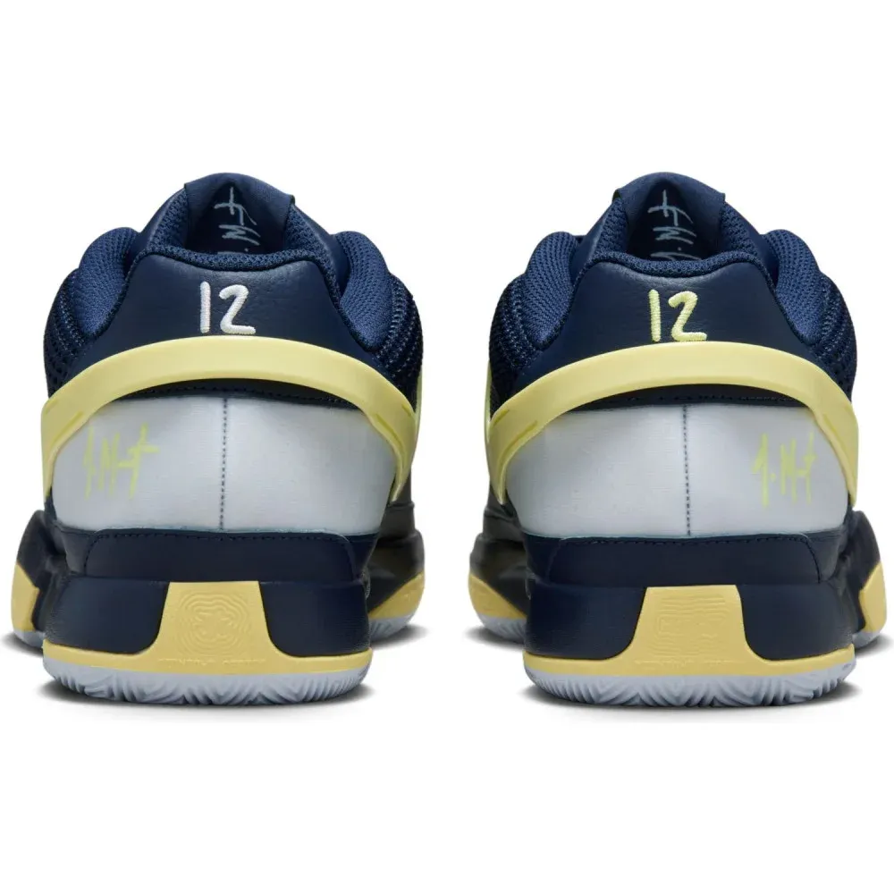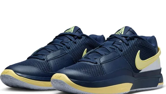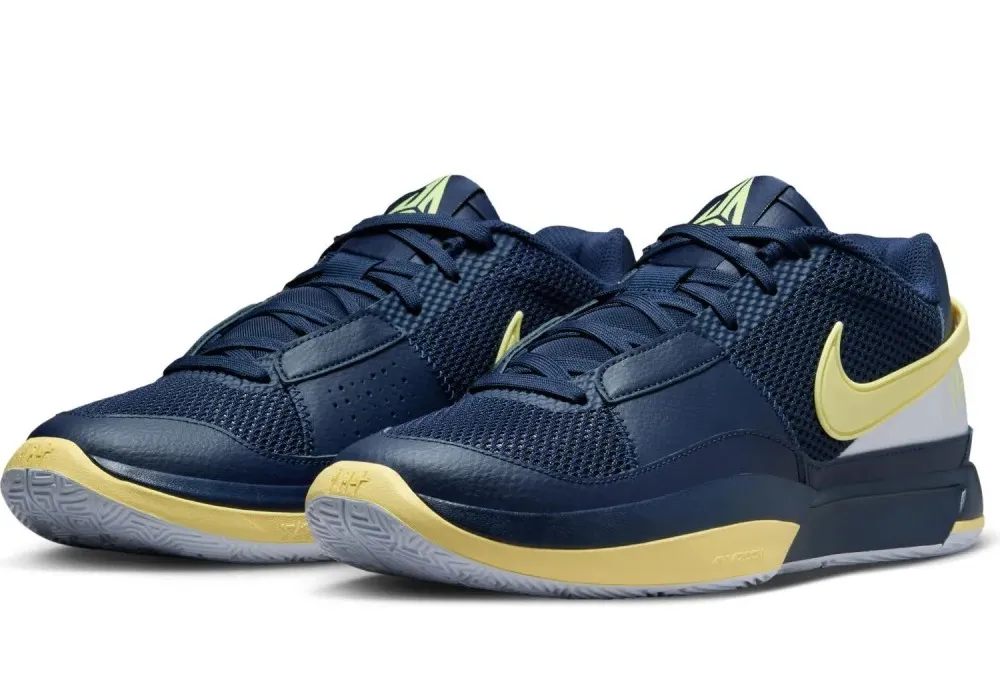 La semelle est également en bleu marine et jaune pâle, complétée par un revêtement extérieur gris. Sur la languette, le logo de Ja Morant apparaît lui aussi en jaune pâle. La Nike Ja 1 « Murray State » est disponible sur Basket4Ballers au prix de 120 euros.