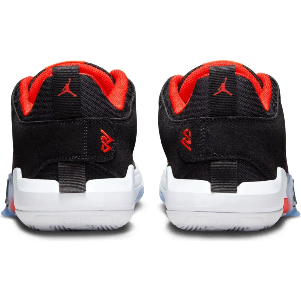 Jordan Brand s'est inspiré de son fameux coloris « Bred » pour cette première avec une tige en noir assortie de finitions en rouge, pour faire ressortir le logo du joueur notamment, sur la languette et le talon. L'ensemble repose sur une semelle blanche assortie de rouge et de noir, ainsi que d'une partie en bleu clair translucide.