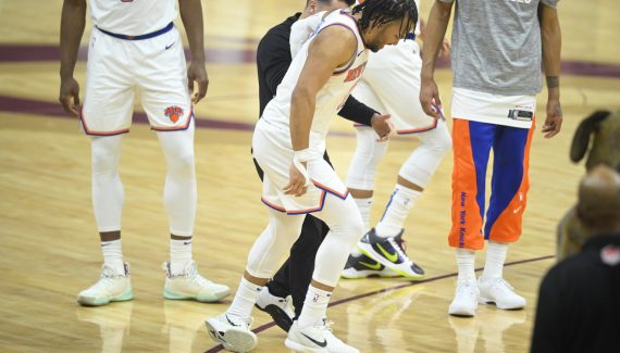 Quarante secondes. C’est le temps de jeu de Jalen Brunson face aux Cavaliers puisque le meneur des Knicks s’est blessé dès le début de match ! Une simple sortie d’écran, puis un tir, et il grimace immédiatement et tombe au sol.