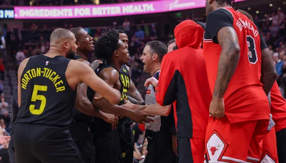 La frustration est palpable du côté du Jazz et sur la dernière faute sur DeMar DeRozan, pour l'envoyer aux lancers-francs à 9 secondes de la fin et obtenir un dernier tir, ça se chauffe devant le banc de Chicago entre Torrey Craig, l'assistant Chris Fleming, Collin Sexton et John Collins.