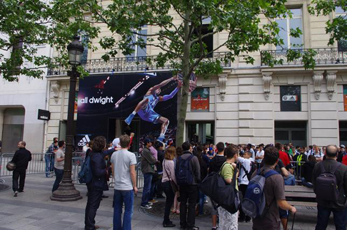 Son programme était chargé, avec signatures d’autographes sur les Champs en fin de matinée, un match de playground sur le Champ de Mars en après-midi et une soirée « hip hop ball » au Cabaret Sauvage pour clore les hostilités.