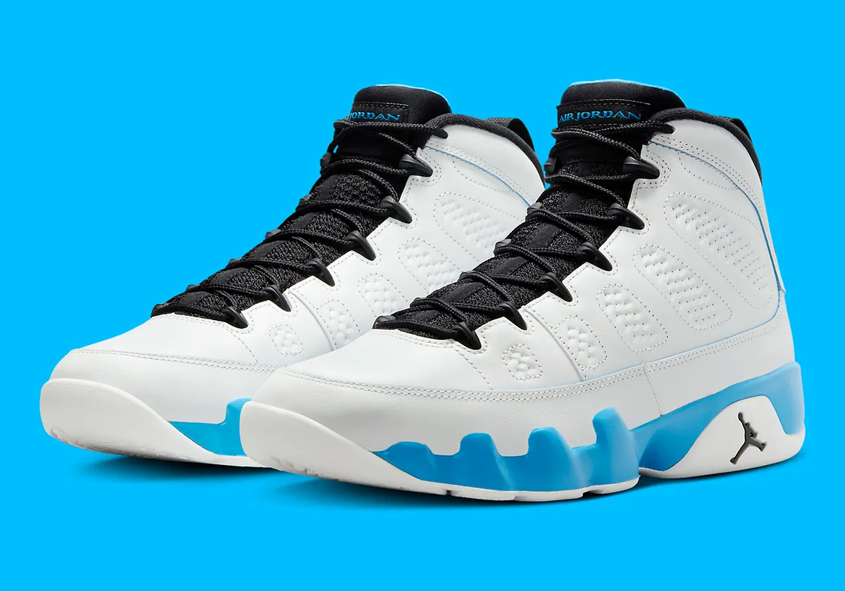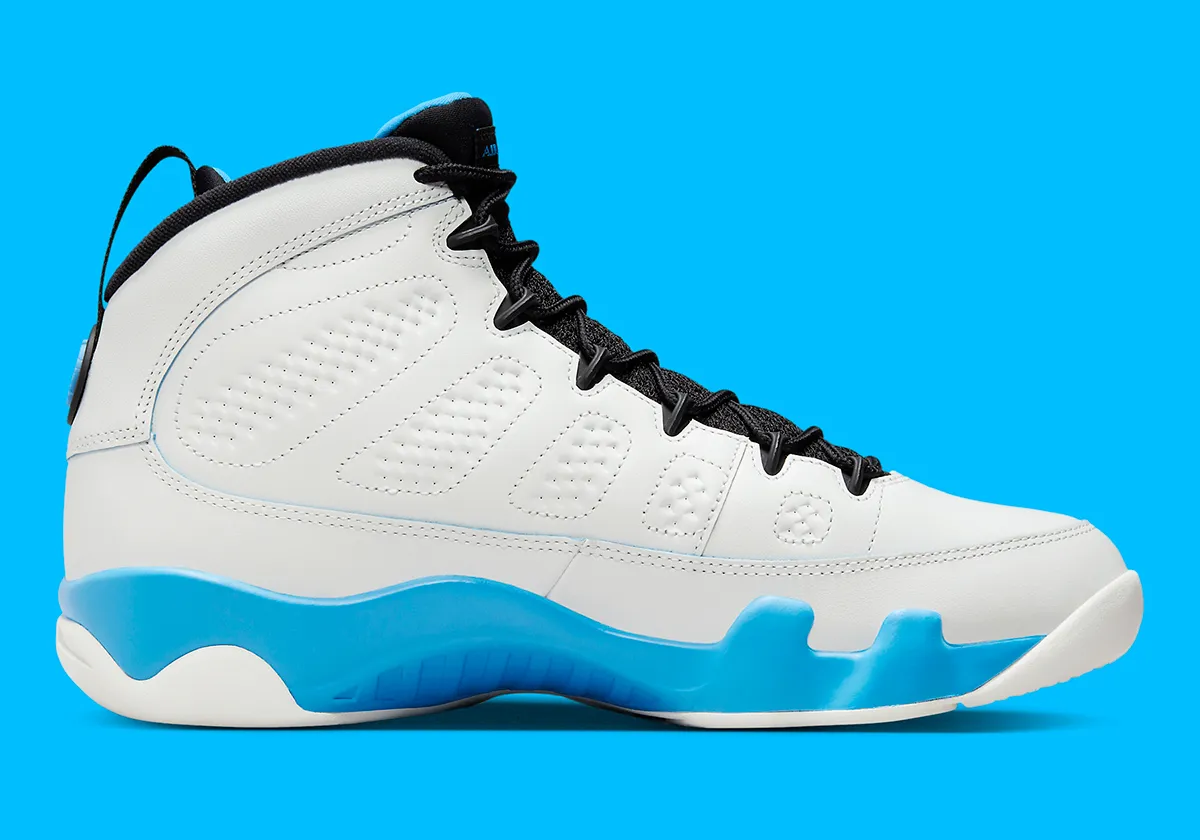 Jordan Brand ne va pas manquer de mettre à l’honneur la Air Jordan 9, sortie il y a bientôt trente ans déjà. De nombreux coloris pourraient ponctuer chaque trimestre, et l’offensive pourrait commencer par cette version « Powder Blue », dont les photos officielles viennent d’être dévoilées.
