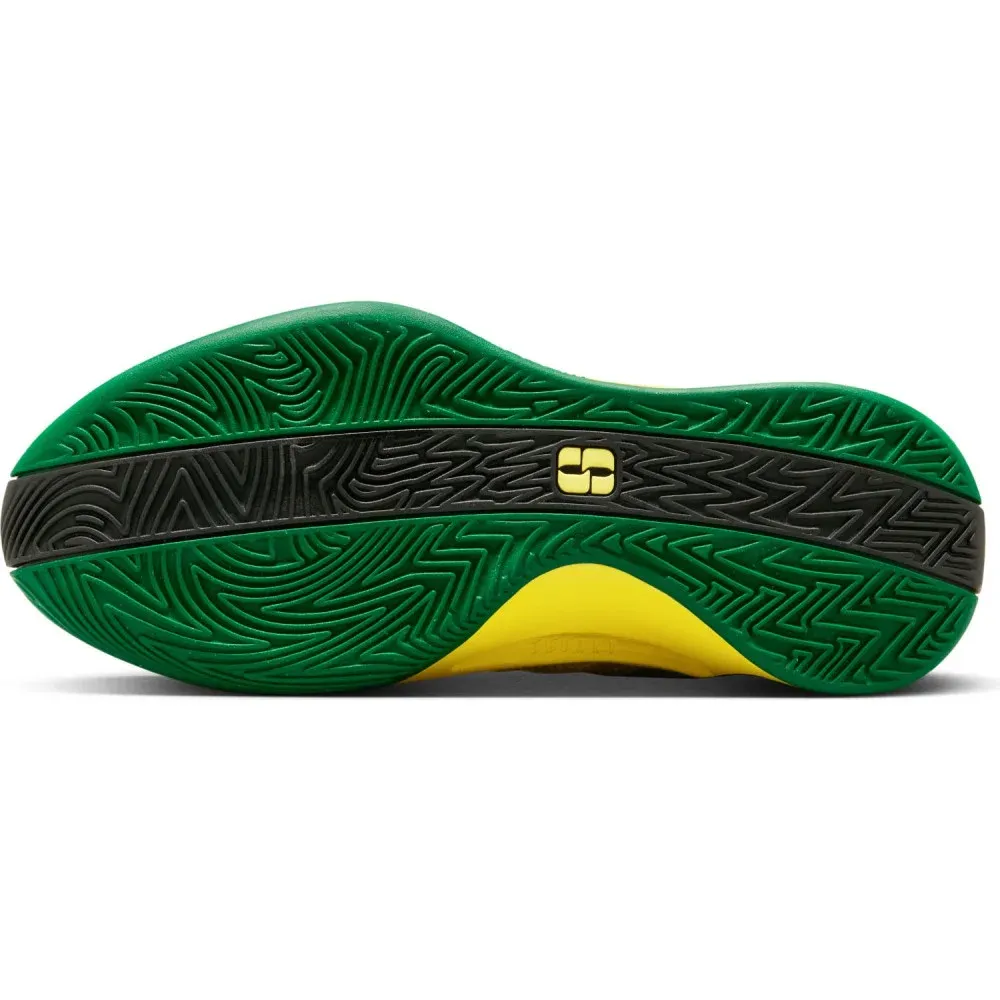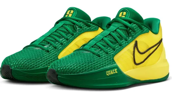 Après avoir sorti un coloris inspiré de la franchise du New York Liberty, la Sabrina 1 remonte cette fois un peu plus loin dans l'histoire de Sabrina Ionescu avec un coloris « The Debut », aux couleurs des Oregon Ducks, sa fac pendant quatre ans, de 2016 à 2020, avant d'intégrer la WNBA.