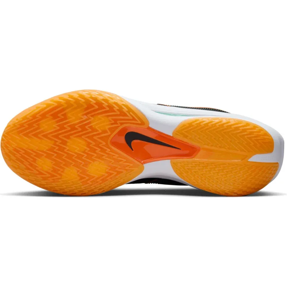 Pour ce coloris “March Madness”, Nike a opté pour une tige noire, complétée par des finitions en orange et vert, pour faire ressortir les contours du “Swoosh” notamment. La semelle apparaît pour sa part en blanc et vert pour la partie intermédiaire, et en orange pour la semelle extérieure.