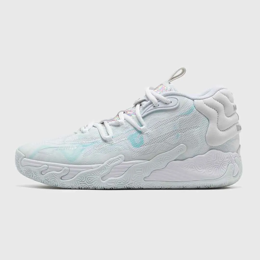 Après avoir créé le buzz avec la MB.03 « Buzz City » aux couleurs des Hornets, la troisième chaussure signature de LaMelo Ball revient cette fois avec un coloris « Iridescent ».