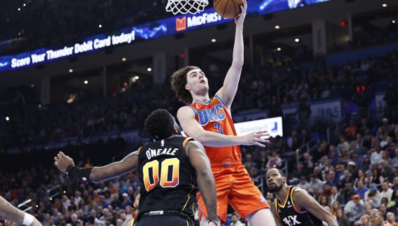 Le Thunder reprend sa première place à l’Ouest, à égalité avec les Wolves qui possèdent le “tie-breaker”. Malgré l’absence de Shai Gilgeous-Alexander, les joueurs d’OKC n’ont eu aucune difficulté à repousser largement des Suns (128-103) au complet, et ainsi afficher le même bilan que les Wolves (51 victoires – 22 défaites) au sommet de la conférence.
