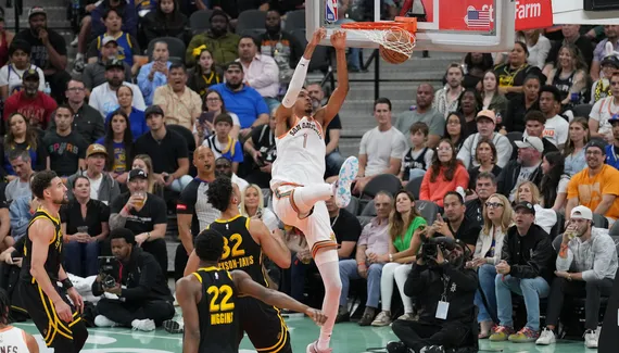 Les entrées de Chris Paul, Brandin Podziemski (12 points, 7 rebonds), et Moses Moody (10 points) sortent les Warriors de leur torpeur. Le trio passe un 16-4 à leurs adversaires à cheval sur les premier et deuxième quart-temps (36-35). Les Spurs répondent aussitôt par un 8-0, mais Stephen Curry garde les Golden State en embuscade. C'est toutefois l'impact de Cedi Osman (18 points), bouillant en première mi-temps, qui donne 8 points d'avance à San Antonio à la pause (60-52).