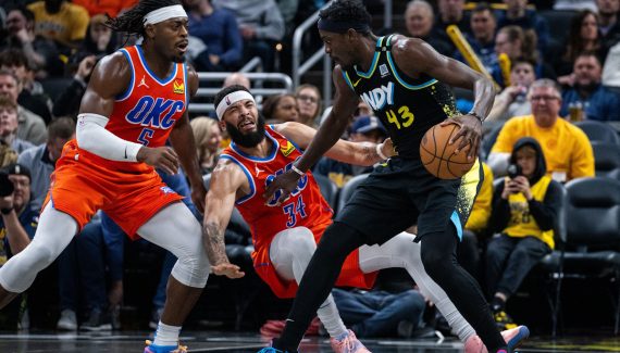 Le Thunder a donné le ton en alignant un 13-2 alimenté par le trio Giddey-Dort-Holmgren, forçant Rick Carlisle à arrêter le jeu (13-22). L’entrée de la « second unit » a alors replacé les locaux dans le droit chemin, avec la triplette Sheppard-Toppin-Smith parfaitement servie par un TJ McConnell fidèle à lui-même, hyperactif (31-32). Le meneur a poursuivi son œuvre avec deux paniers puis trois passes pour les 3-points de Doug McDermott et Ben Sheppard puis le dunk de Jalen Smith (47-37).