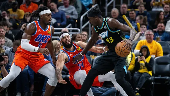Le Thunder a donné le ton en alignant un 13-2 alimenté par le trio Giddey-Dort-Holmgren, forçant Rick Carlisle à arrêter le jeu (13-22). L'entrée de la « second unit » a alors replacé les locaux dans le droit chemin, avec la triplette Sheppard-Toppin-Smith parfaitement servie par un TJ McConnell fidèle à lui-même, hyperactif (31-32). Le meneur a poursuivi son œuvre avec deux paniers puis trois passes pour les 3-points de Doug McDermott et Ben Sheppard puis le dunk de Jalen Smith (47-37).