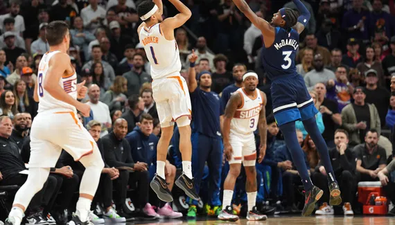 Après la défaite de Denver chez les Clippers, Minnesota avait l'occasion de faire le break en tête de tête de la conférence Ouest avec ce déplacement à Phoenix. Les partenaires de Rudy Gobert n'en auront pas profité, et ils ont tout simplement pris le match par le mauvais bout, à l'image de Naz Reid qui gâche deux contre-attaques lors des deux premières possessions. Il est d'abord contré par Jusuf Nurkic (11 points, 15 rebonds, 6 passes décisives, 3 interceptions) puis il rate son double-pas face à Bradley Beal. Sans pitié, les Suns punissent.