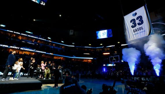 Aux côtés de sa femme et de ses filles, Marc Gasol pouvait observer son numéro #33 s’élever dans le FedExForum.