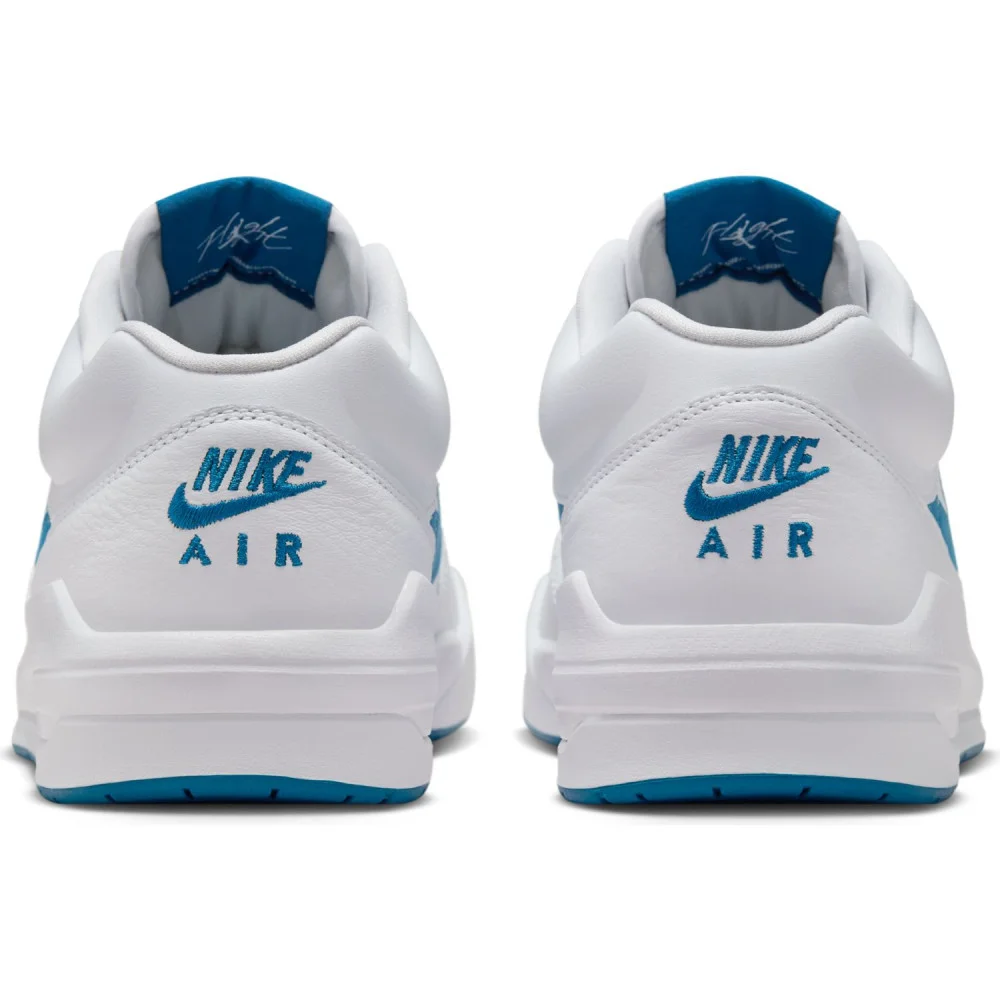 Parmi les neuf coloris actuellement disponibles sur Basket4Ballers, on trouve notamment ce coloris « White Blue », principalement blanche avec un joli bleu pour faire ressortir le « Swoosh » sur l’empeigne, l’étiquette sur la languette et le “Nike Air” sur le talon.