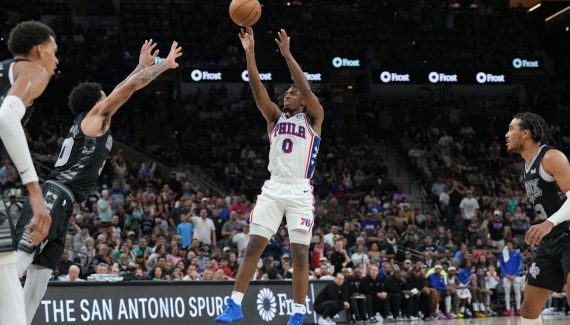 Deux prolongations et un nouveau record en carrière (52 points) pour Tyrese Maxey. C’est ce qu’il a fallu aux Sixers pour venir à bout des Spurs (133-126). Back-to-back oblige, Nick Nurse a reposé Joel Embiid et Kyle Lowry. Tobias Harris, Robert Covington et De’Anthony Melton étaient également absents. En revanche, Tyrese Maxey n’avait pas fait l’impasse ce dimanche soir. En délicatesse avec son shoot à 3-points (2/10), le meneur de Philly avait décidé d’attaquer sans relâche le cercle et c’est lui, en prolongation, qui va faire la différence.