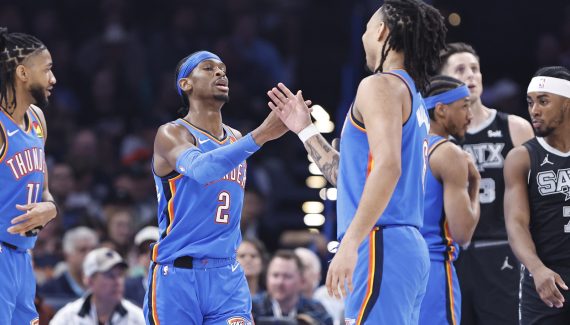 Pendant que les Nuggets dominaient les Wolves dans la “finale” de l’Ouest, le Thunder en profitait pour se défouler sur les Spurs avec une victoire de… 38 points : 127-89 ! Un succès qui leur permet de revenir à hauteur des Wolves, mais pas de passer devant car c’est Minnesota qui a le meilleur bilan dans la conférence Ouest.