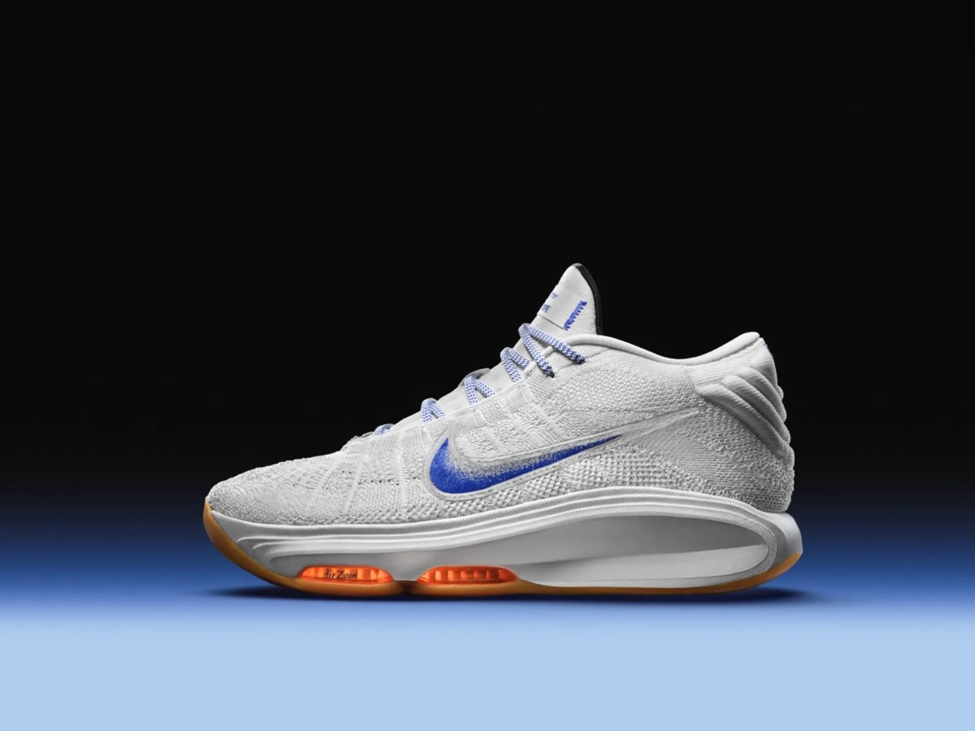 On retrouve ainsi une nouvelle unité Air Zoom à l’avant du pied pour agir à la fois sur le confort et le retour d’énergie vers l’avant, complétée par une couche Zoom Air Strobel sur toute la longueur. Côté design, Nike est revenu à du classique après avoir osé davantage sur la Nike GT Hustle 2. La tige en mesh, ici en blanc, est assortie d’un « Swoosh » en tricot souple bleu, tandis que la semelle extérieure ressort en orange. .