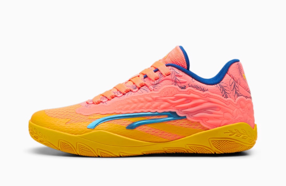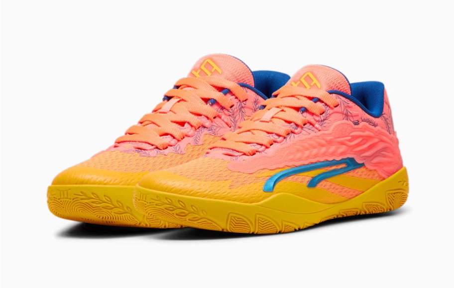 Toujours dans cette même optique, on retrouve un renfort en TPU à l’arrière avec un motif de cerisier en fleurs, et au niveau du col des motifs des couronnes de lauriers représentant ses médailles d’or aux Jeux Olympiques de Rio en 2016 et Tokyo en 2021. La joueuse a présenté un premier coloris baptisé Dawn in ‘Cuse avec une base jaune complétée par du orange saumon, tandis que les bandes « PWR Tape » et l’intérieur du col ressortent en bleu.