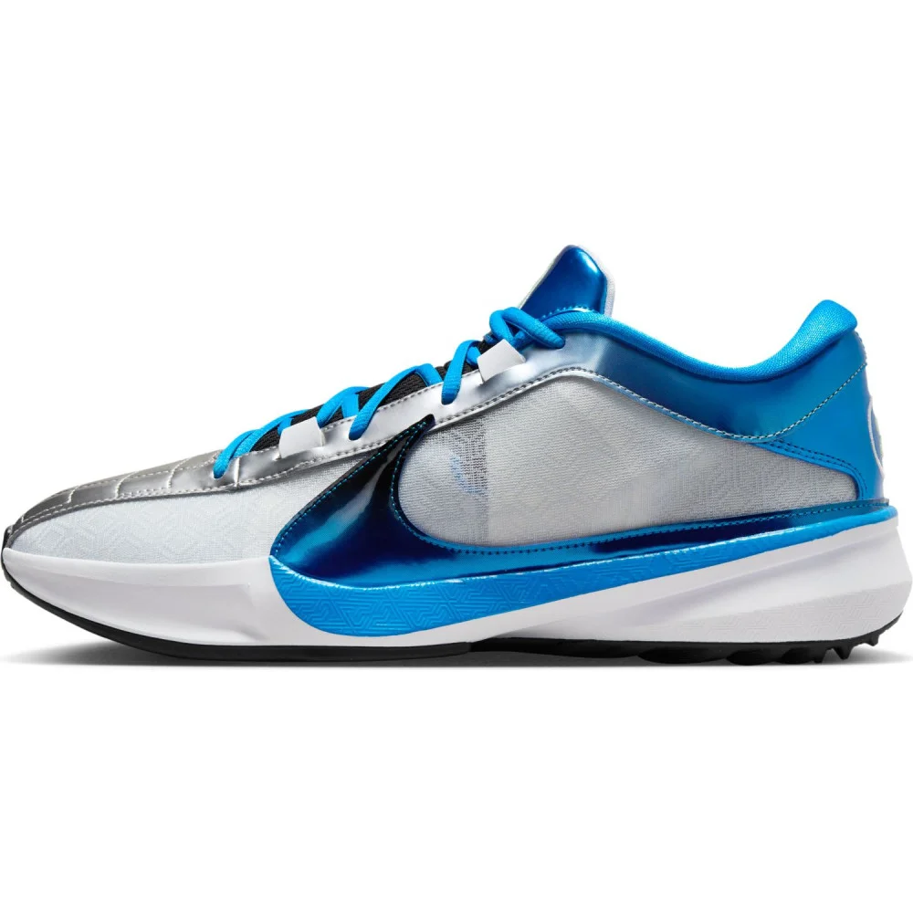 Revoilà la Zoom Freak 5 ! La cinquième chaussure signature de Giannis Antetokounmpo se devait d’être au rendez-vous des playoffs, ce même si le leader des Bucks n’est pas dans sa meilleure forme. Le « Greek Freak » doit en effet composer avec une blessure au mollet et devrait probablement manquer le Game 1 à domicile face au Pacers.