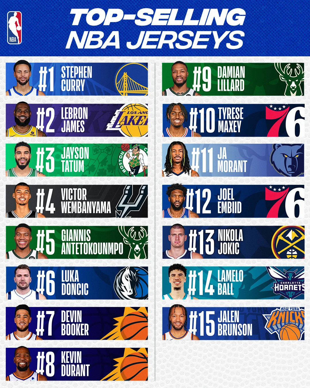 La “Wembamania” reste donc très forte aux Etats-Unis, et le Français devance toujours Giannis Antetokounmpo, Luka Doncic, Devin Booker, Kevin Durant, Damian Lillard, Tyrese Maxey, Ja Morant, Joel Embiid, Nikola Jokic, LaMelo Ball et Jalen Brunson, qui prend la place de De'Aaron Fox.
