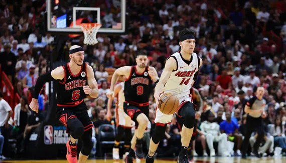 – Tyler, ce Herro. L'arrière a tenu la boutique comme un vétéran en faisant de tout, avec notamment cinq passes décisives en premier quart-temps pour mettre ses coéquipiers en confiance. Il a aussi brillé par son scoring et des paniers importants, pour calmer les ardeurs des Bulls. Même s'il échoue à un cheveu de ce qui aurait été son deuxième triple-double en carrière (24 points, 10 rebonds, 9 passes décisives), son +/- de +32 en dit long sur son impact au cours de la rencontre. L'homme du match aux côtés d'un très bon Jaime Jaquez Jr, à 21 points, 6 rebonds et 6 passes décisives.