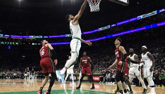 C’est ce que l’on appelle faire le boulot. Contre une équipe du Heat très amoindrie sans Jimmy Butler ni Terry Rozier, les Celtics ont globalement fait preuve de sérieux pour s’offrir le Game 1 sans sourciller dimanche (114-94). Boston a notamment pu compter sur un Jayson Tatum exemplaire et auteur du premier triple-double de sa carrière en playoffs. L’ailier a montré la voie et a parfaitement su répondre au défi proposé par la défense de Miami.