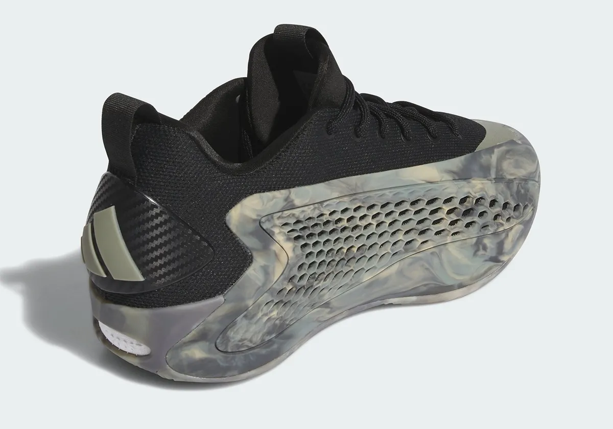 L’arrière de Minnesota a porté pour la première fois ce modèle à la coupe plus basse avec un coloris « Mural ». En voici à présent un second officiellement dévoilé par adidas, baptisé « MX Grey ». La partie supérieure en mesh noir est complétée par du gris sur le logo du joueur sur la languette et les trois bandes sur le talon. Le reste, semelle comprise, ressort sous un motif « camouflage, dans un style inspiré de la Yeez Foam Runner de Kanye West.