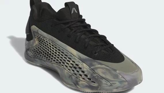 L’arrière de Minnesota a porté pour la première fois ce modèle à la coupe plus basse avec un coloris « Mural ». En voici à présent un second officiellement dévoilé par adidas, baptisé « MX Grey ». La partie supérieure en mesh noir est complétée par du gris sur le logo du joueur sur la languette et les trois bandes sur le talon. Le reste, semelle comprise, ressort sous un motif « camouflage, dans un style inspiré de la Yeez Foam Runner de Kanye West.