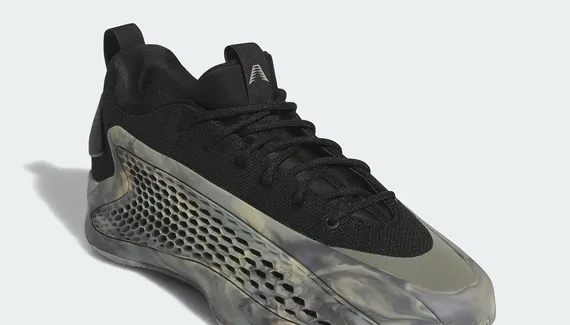 L'arrière de Minnesota a porté pour la première fois ce modèle à la coupe plus basse avec un coloris « Mural ». En voici à présent un second officiellement dévoilé par adidas, baptisé « MX Grey ». La partie supérieure en mesh noir est complétée par du gris sur le logo du joueur sur la languette et les trois bandes sur le talon. Le reste, semelle comprise, ressort sous un motif « camouflage, dans un style inspiré de la Yeez Foam Runner de Kanye West.