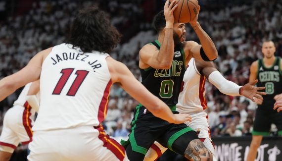 Miami a commis un crime de lèse-majesté, en osant aller s’imposer dans le Game 2 à Boston… et en a payé le prix fort cette nuit dans le Game 3 ! Étouffés dès les premières minutes du match, les Floridiens n’ont jamais été en mesure de relever la tête pour finalement s’incliner 104-84. Auteurs de 22 points chacun, Jaylen Brown et Jayson Tatum n’ont presque pas eu à forcer leur talent.