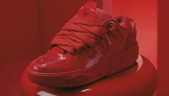 Le premier modèle en rouge vif devrait porter le nom de « Puma LaFrancé Amour ». La tige en mesh est complétée par des parties en cuir verni pour accentuer l’effet brillant. On retrouve également des lacets extra large et tout un tas de finitions, sur la semelle intermédiaire notamment où on retrouve les inscriptions « 1 of 1 », « Not From Here » et le logo LF.