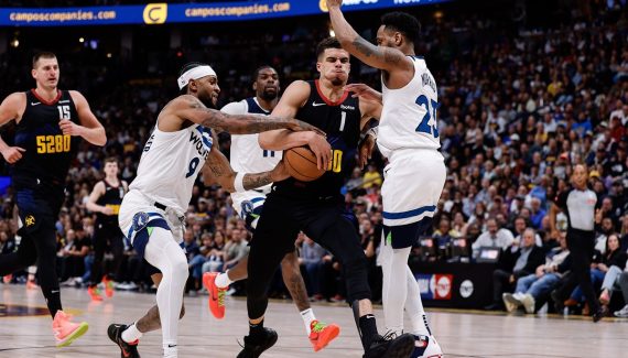 Reggie Miller, qui commentait la partie sur TNT, l’a répété de nombreuses fois pendant la première période : les Wolves donnaient l’impression de jouer avec sept joueurs. Et il n’avait franchement pas tort… La victoire de Minnesota dans ce Game 2 à Denver s’explique avant tout par une défense absolument étouffante, alors même que Rudy Gobert était forfait pour assister à la naissance de son fils !