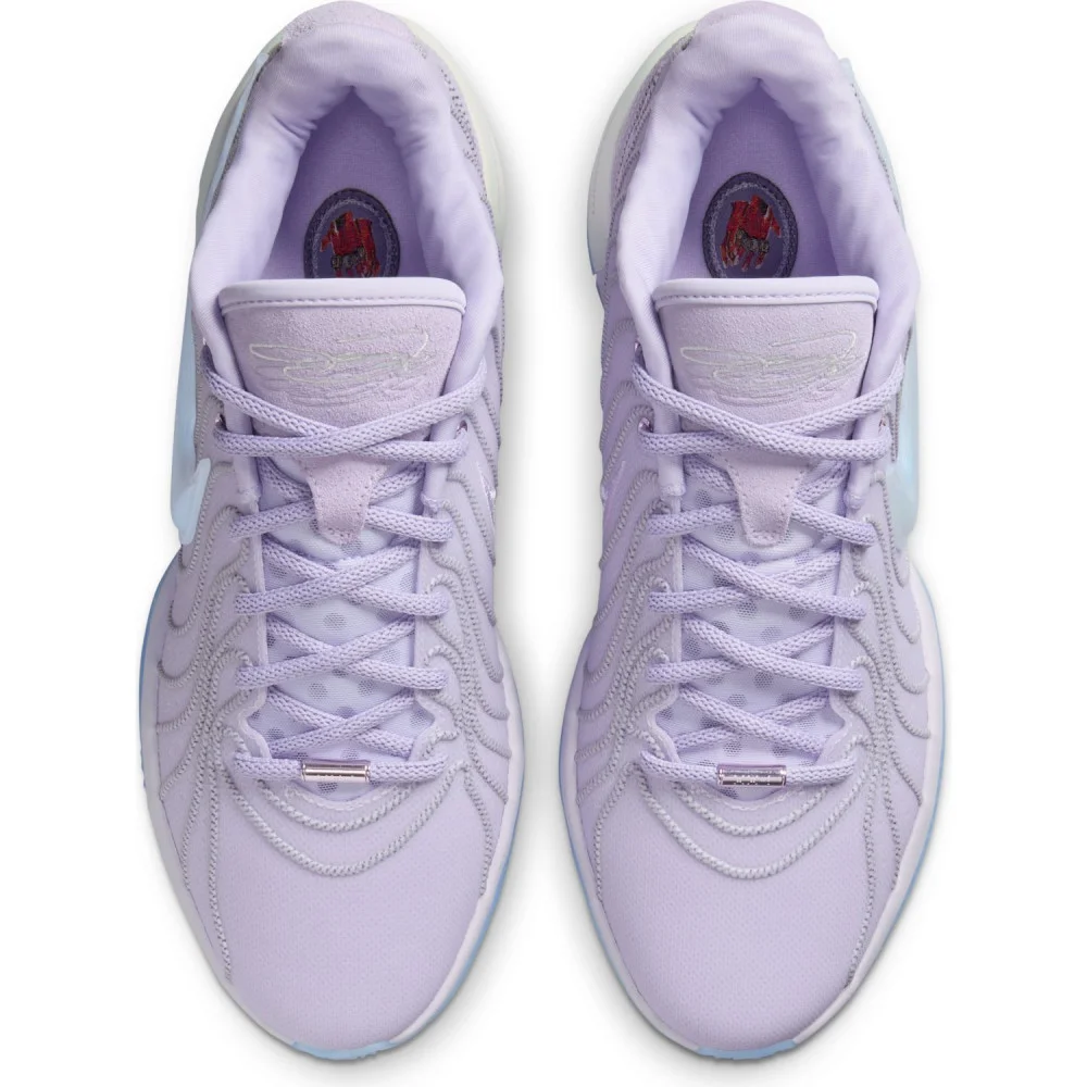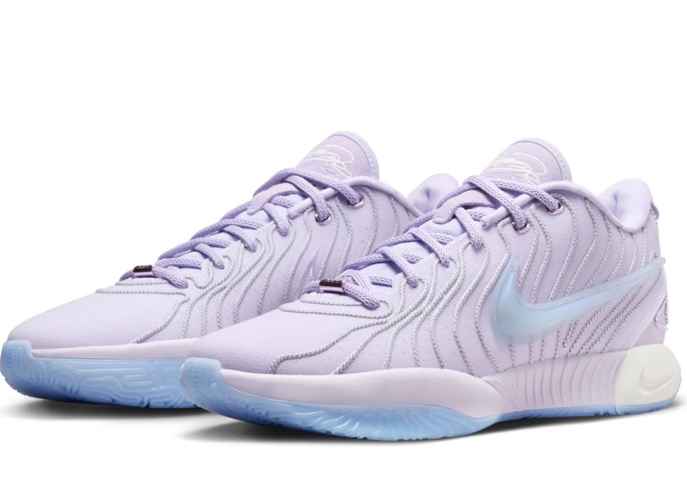 La tige violette recouverte de câbles FlyWire est assortie d’un “Swoosh” bleu ciel. La semelle intermédiaire et blanc et violet repose sur une semelle extérieure également en bleu clair. La paire sera disponible à la vente à partir de ce soir, à minuit pile, sur Basket4Ballers, au prix de 200 euros.