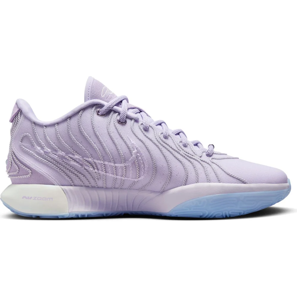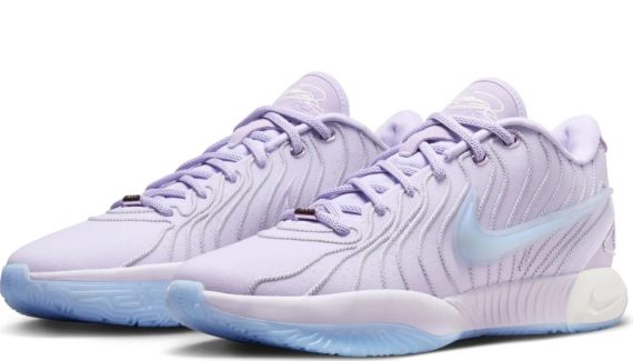 La tige violette recouverte de câbles FlyWire est assortie d’un “Swoosh” bleu ciel. La semelle intermédiaire et blanc et violet repose sur une semelle extérieure également en bleu clair. La paire sera disponible à la vente à partir de ce soir, à minuit pile, sur Basket4Ballers, au prix de 200 euros.