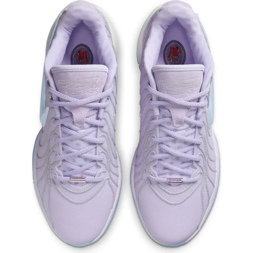 La tige violette recouverte de câbles FlyWire est assortie d'un “Swoosh” bleu ciel. La semelle intermédiaire et blanc et violet repose sur une semelle extérieure également en bleu clair. La paire sera disponible à la vente à partir de ce soir, à minuit pile, sur Basket4Ballers, au prix de 200 euros.